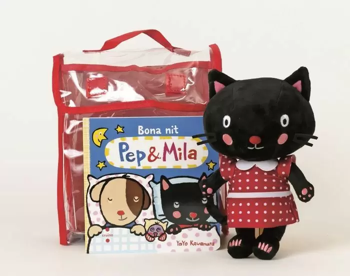 El Pep i la Mila s'adonen que ja és de nit: recullen les seves coses, fan un mos i un got de llet, passen pel bany, es posen el pijama... i, quan ja són al llit, es diuen bona nit!